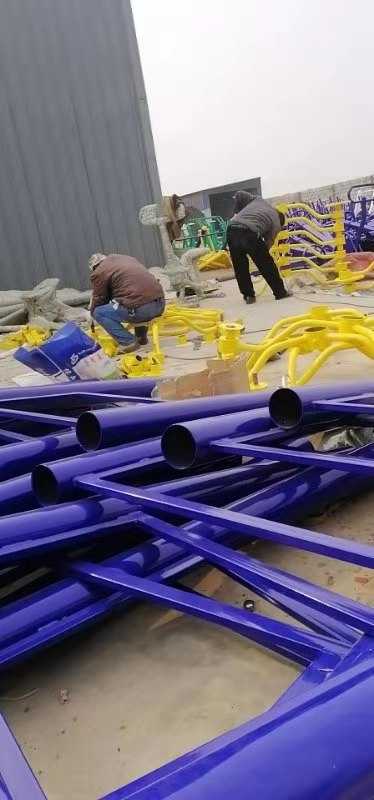 2、戶外健身器材雙位太空漫步機結構:產品機架由三根立柱和扶手管、底圓管焊接成框架式結構。三根立柱采用¢114×3㎜標準焊管制作,支撐管采用¢42×3㎜標準焊管制作,采用經過船級社認證的焊絲,使用二氧化碳氣體保護焊焊接為一體。外表美觀大方,強度高,使用壽命長。戶外健身器材雙位太空漫步機擺桿由擺管和軸套踏板焊接而成,擺管采用¢48×3㎜標準焊管制作,軸套采用外徑¢60㎜,壁厚6㎜的20#鋼無縫管制作,踏腳板采用厚度3㎜的花紋板制作并焊有高度32㎜的圍邊,有效的防滑。產品采用單擺桿結構,有效避免對腳踝關節的傷害,限制擺桿擺動幅度,防止運動傷害的產生,并在踏板頭部裝有防撞條,以防止運動過程中的傷害,確保運動的安全性。采用經過船級社認證的焊絲,使用二氧化碳保護焊焊接為一體。